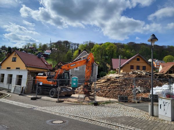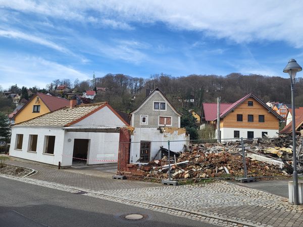 Abbruch Gebäude und Entsiegelung der Brachfläche, Beräumung und Entsorgung der Abrissmaterialen sowie Herstellen der Geländeoberfläche.